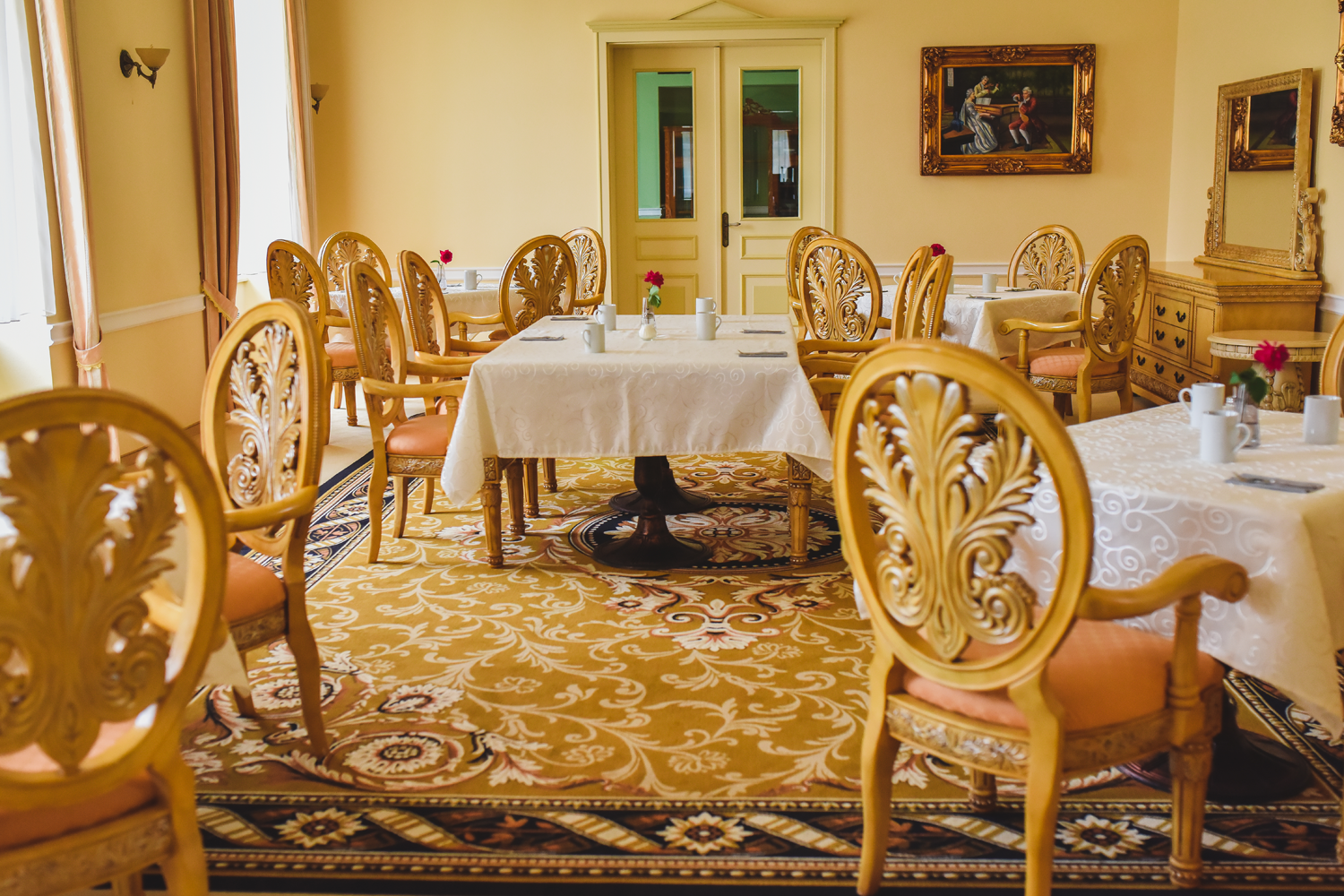 Pokud jde o jídlo, přijdou si gurmáni na své v každém ohledu. Naše zámecká restaurace s venkovní terasou nabízí kreativní a lehkou kuchyni z čerstvých produktů. Protože vás chceme rozmazlovat pouze čerstvými pokrmy té nejvyšší kvality, odebíráme velké množství surovin, jako například vejce, masa či mastné výrobky, z místních farem a lokálních dodavatelů. Pochutnejte si na domácích hlavních chodech, polévkách, salátech či malém občerstvení s úžasným výhledem na park. Osvěžení vám přinese české pivo, sklenice šumivého vína či některý z našich koktejlů. Odpoledne servírujeme domácí koláče a vynikající italské kávové speciality.